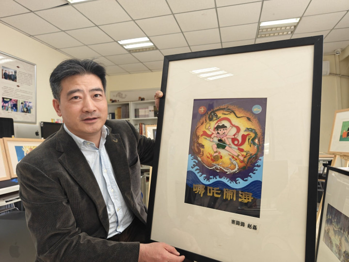 赵磊展示其复刻的赛璐璐作品“哪吒闹海”